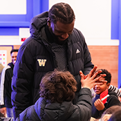 Franck Kepnang is known for his defensive presence and resilience through injury setbacks. Beyond the court, he is a campus and conference leader, serving as University of Washington’s (UW) representative on the Big Ten Student-Athlete Issues Commission and 2025-26 Jackie Robinson Community & Impact Award. Franck founded the Franck & Family Foundation, through which he supports orphanages in Cameroon and provides care packages to people experiencing homelessness, while also engaging in local outreach through the Black Student-Athlete Alliance and Seattle community programs. His global perspective was further shaped by a study abroad experience in Ghana focused on Pan-African history and education. Academically accomplished, he holds a degree in Geography: Data Science and is pursuing a Master’s in Information Management as he plays in his final collegiate season.